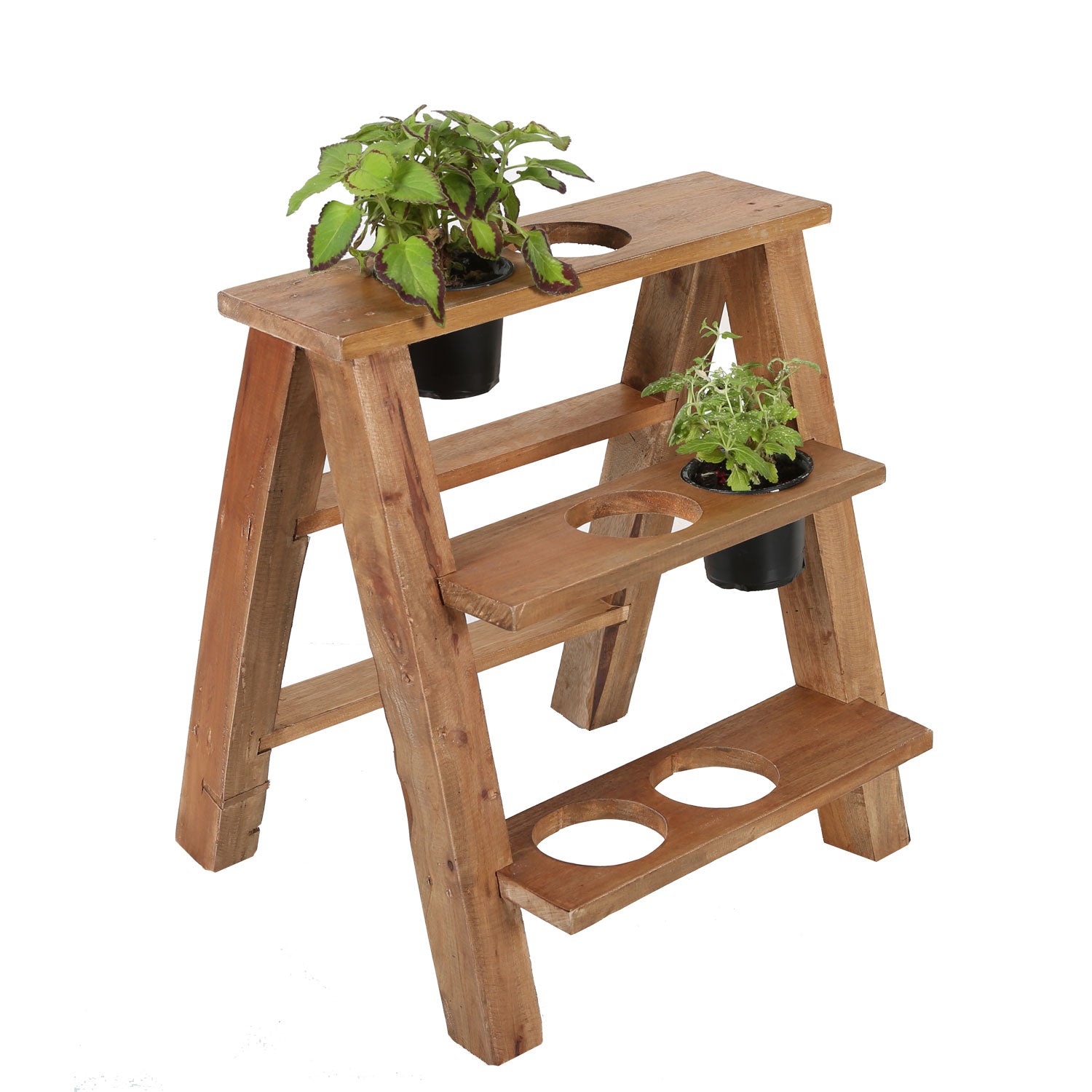 Zet uw planten binnen of buiten vakkundig in de schijnwerpers! De stabiele en rustieke bloemenrek is ideaal voor uw tuin – en dankzij zijn ruimtebesparende ontwerp ook geschikt voor het balkon, de woonkamer of de serre. De bloemenladder biedt met in totaal 3 planken met elk 2 gaten voldoende ruimte voor uw bloempotten en sierpotten. De treden maken het mogelijk om planten, kruiden en bloemen stijlvol en veilig te presenteren. Als de plantenladder niet meer nodig is, kunt u deze ruimtebesparend inklappen. De plantenladder hoeft niet in elkaar gezet te worden, omdat deze al gemonteerd wordt geleverd.