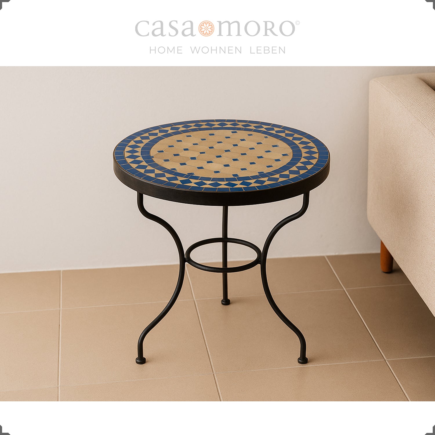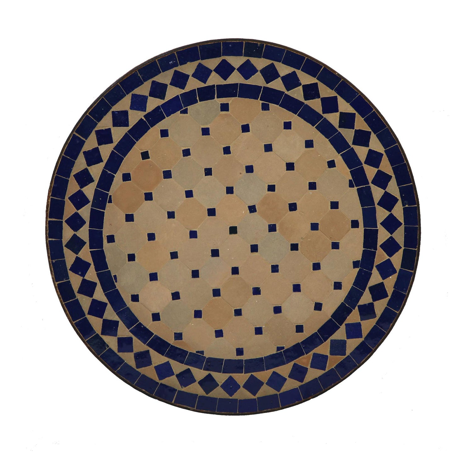 Deze kleine tafel met een diameter van 45 cm is een echte allrounder: als plantentafel in de woonkamer, kleine bijzettafel op het balkon of mozaïektafel voor in de keukenhoek. Het Zellige-patroon in blauw-terracotta brengt een mediterrane sfeer in elke omgeving.