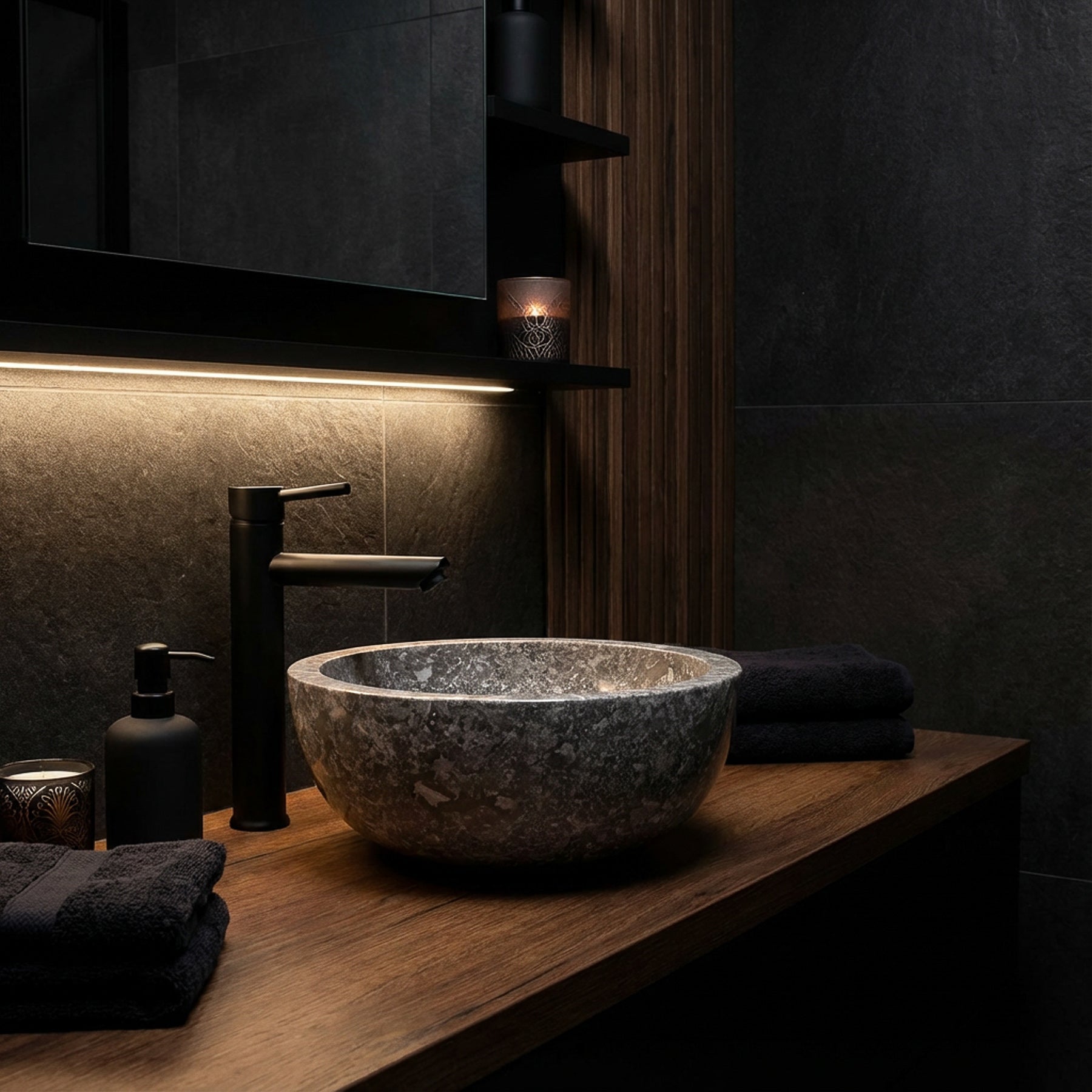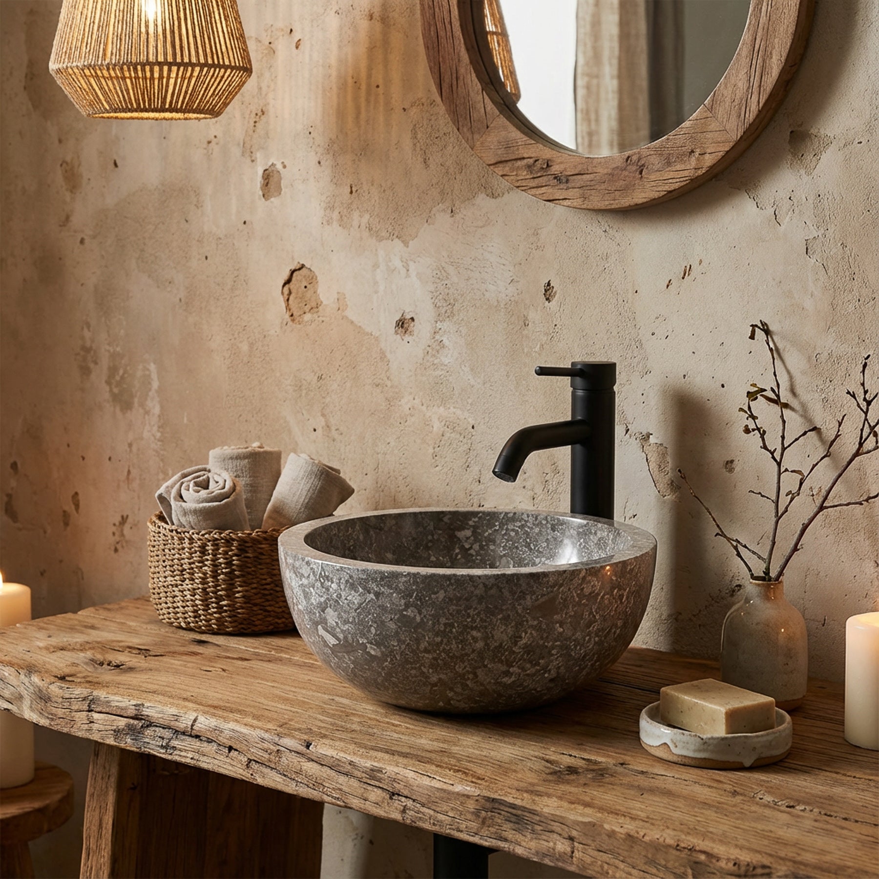 Marmer Wastafel als stijlvol natuuruniekstuk - grijze steenstructuur met moderne elegantie