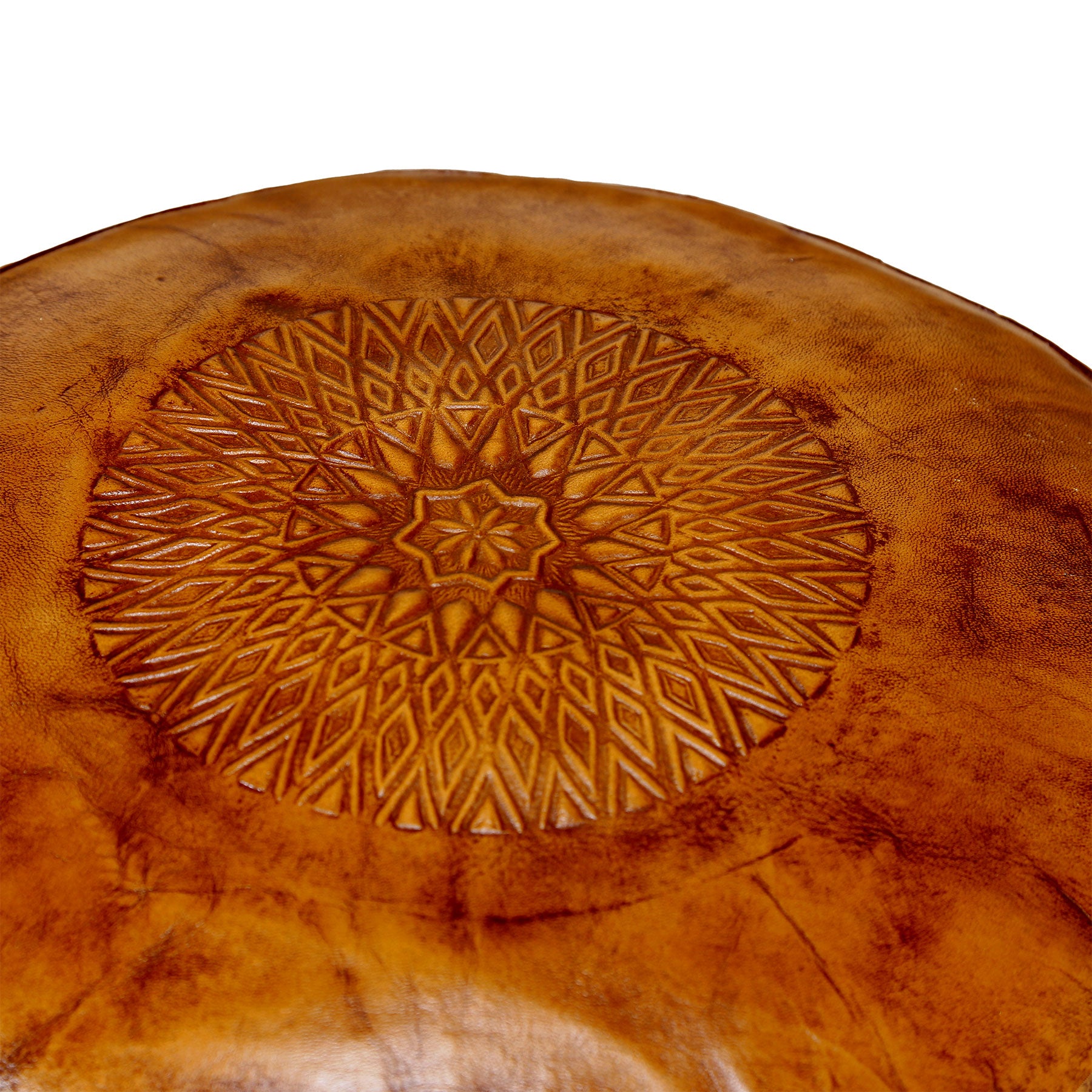 Marokkanische Sitzkissen / Hocker aus Leder - Teil des orientalisch arabischen Lebensstils. Marokkanisches Kunsthandwerk aus echtem Leder. In reiner Handarbeit gefertigt und mit marokkanischen Motiven fein geprägt.