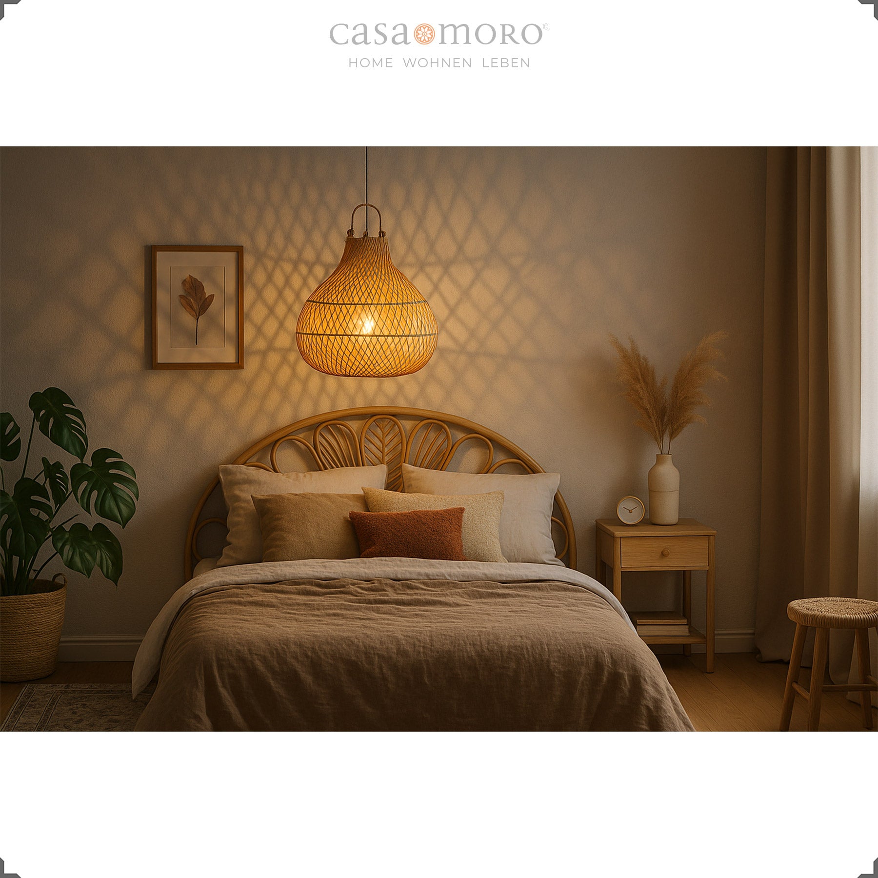 Rattan-Lampe im Boho-Stil – sanftes Licht für wohnliche Räume